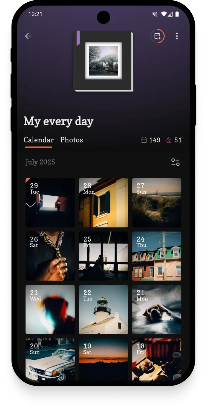 Album just one photo a day and watch ordinary moments become a meaningful and authentic journal of your life.
